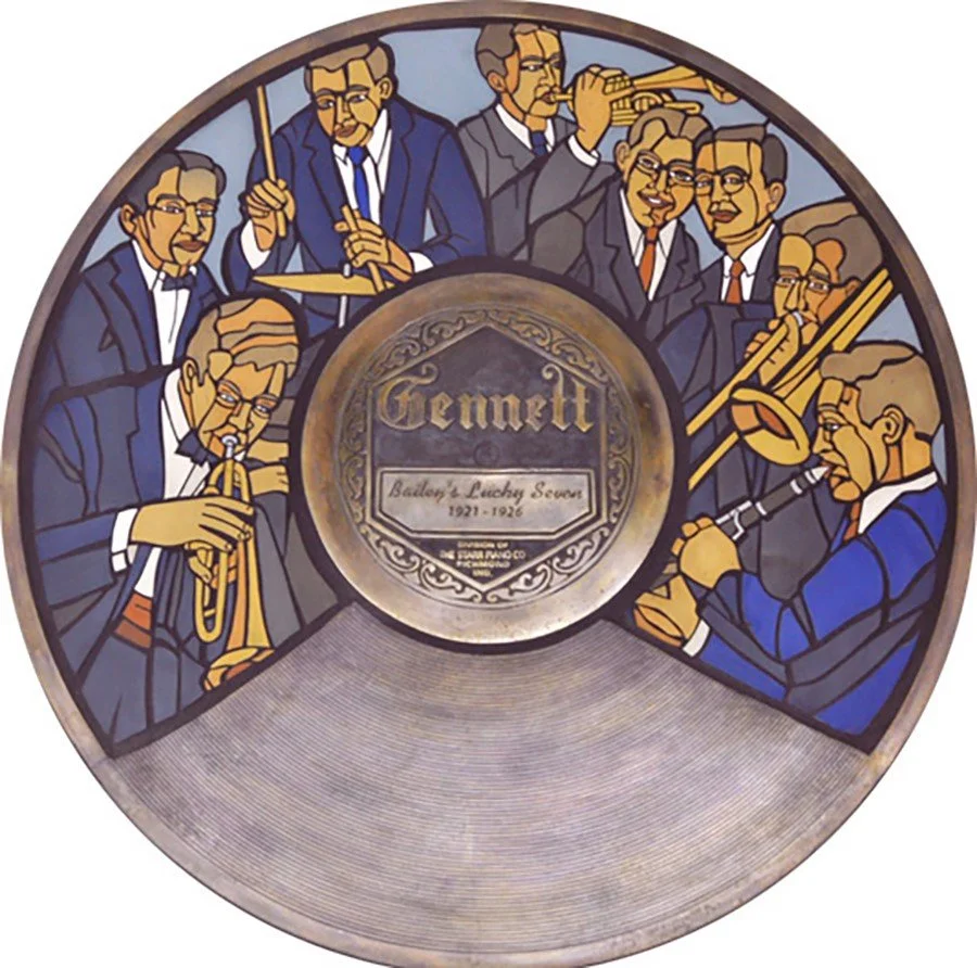 Gennett Records was home to many pivotal and influential figures in jazz, but if a count of all the Gennett recordings made by those artists were doubled, it still wouldn’t equal the number of sides recorded by Gennett’s most prolific recording group, Bailey’s Lucky Seven. In October 1921, a mere few months after the first-ever jazz release, Victor’s “Livery Stable Blues,” took the world by storm, the Gennett studio in New York City began a series of recordings organized by Sam Lanin to capitalize on the new interest. Lanin, a popular bandleader and music agent, recruited the most in-demand studio musicians for many of the sessions, including Phil Napoleon on cornet, Irving Milfred “Miff” Mole on trombone, Jimmy Lytell on clarinet, Frank Signorelli on piano, and Jack Roth on drums. Lanin often hired Red Nichols to add an invigorating second cornet line to capitalize on the hot sound at the time. Ironically, the group never included anyone named Bailey, and sometimes more or less than seven members recorded together. Additionally, no one named Ladd could be found in the all-white Ladd’s Black Aces, and the five-plus members of the Original Memphis Five all hailed from the Northeast, so the origins of their band names is a bit of a mystery. Recordings reveal an excellent band with well-crafted and smartly arranged tunes that both hit upon the pop dance sound and highlight the various members’ virtuosity and innovative playing. One of the centerpieces of their repertoire was “Nobody Lied,” recorded in June of 1922. This recording featured Phil Napoleon on coronet and Cliff “Ukulele Ike” Edwards on kazoo. Edwards was one of the more in-demand vocalists of both stage and record, who won an Oscar for his recording of “When You Wish Upon a Star” as the voice of Jiminy Cricket in Disney’s “Pinocchio.” Bailey’s Lucky Seven was a group that played with the musical vibrancy akin to that of their fellow Gennett Walk of Fame brethren. Their recordings not only helped keep the lights on at Gennett, but also seamlessly combined the free-spirited, hot sound of jazz with the more danceable pop style of the day to make some of the period’s great records.